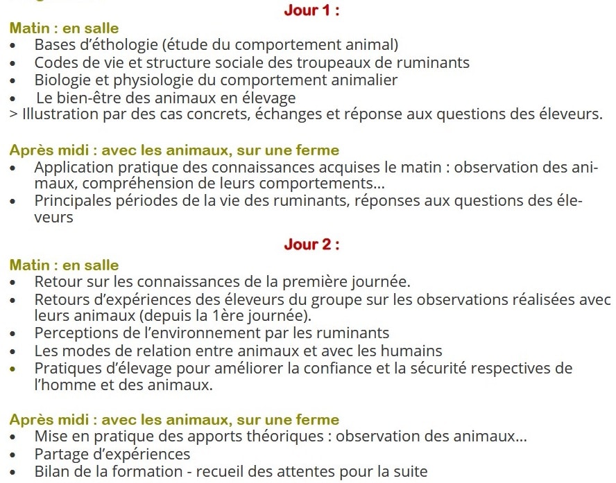 - Comprendre les comportements des ruminants et être capable de percevoir les signes des animaux.